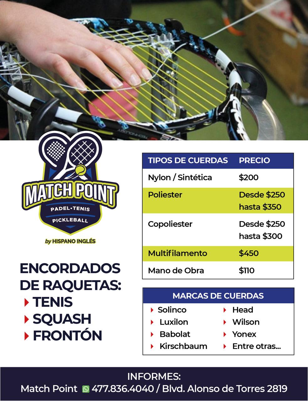 También tenemos el servicio de Encordado de Raquetas, pregunta por los tipos de cuerda y precios que manejamos.
